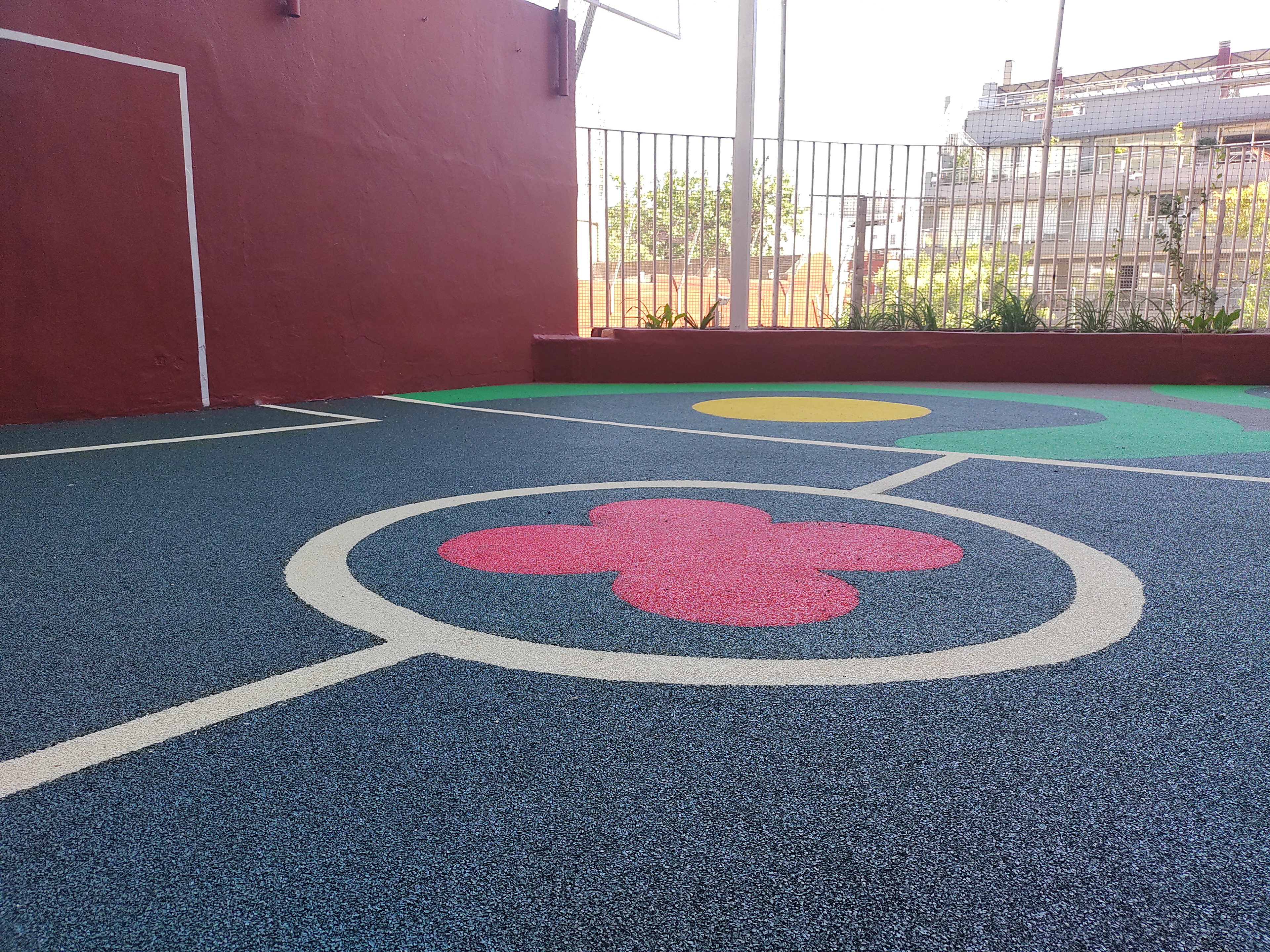 En este proyecto trabajamos sobre el área destinada a los más chicos, reemplazando el antiguo piso de mosaico calcario por un solado anti-golpes que aporta mayor seguridad y confort en el juego.