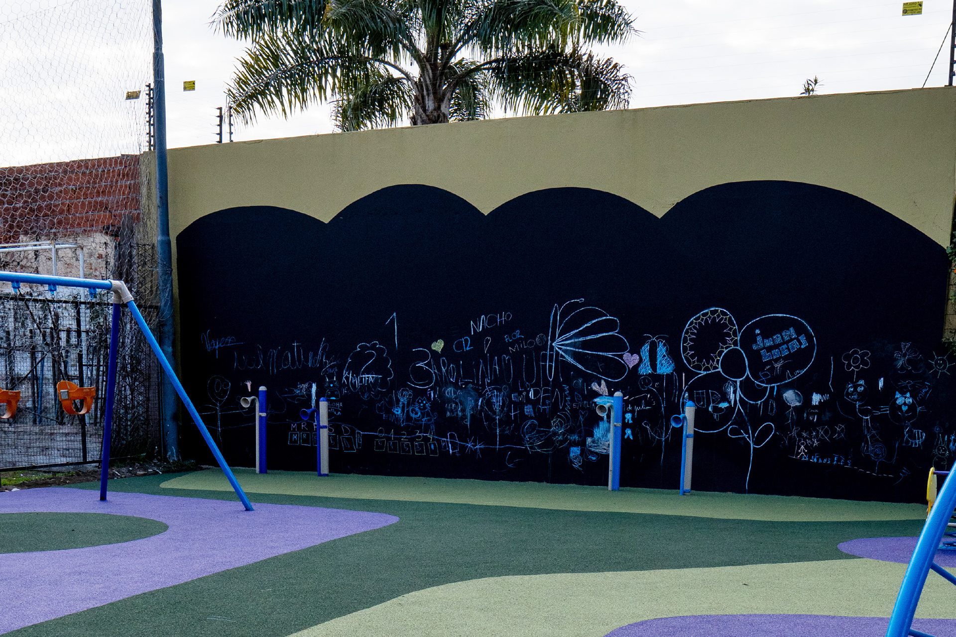 Cada intervención nace del diálogo con la institución: qué edades lo van a usar, qué mensaje quiere transmitir, qué clima lo rodea. Así logramos que cada pared se vuelva un punto de atracción, un refugio creativo o una excusa para quedarse un rato más en el patio.